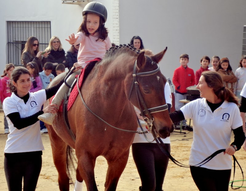 María Teresa Ortiz, campeona de Andalucía en doma clásica y subcampeona de España realizó una magistral exhibición ecuestre sobre su bello caballo "Sansón". El espectáculo, único en nuestro Centro, tuvo la gran dificultad del lugar, un espacio muy atípico -el patio de un colegio- y absolutamente rodeado de un ferviente y curioso público infantil.